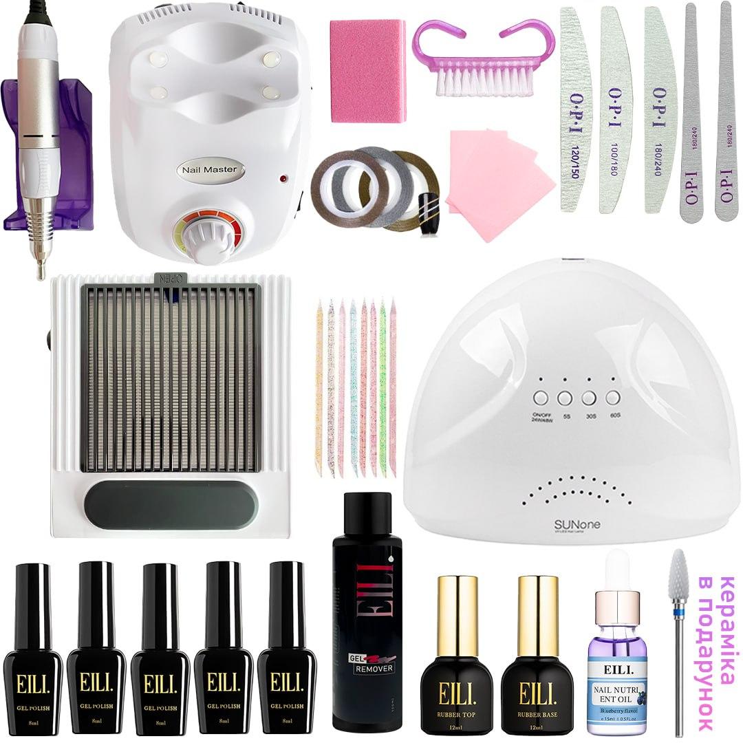 Стартовий набір для манікюру та педикюру - повний набір з фрезером витяжкою, лампою, гель-лаками та розхідниками